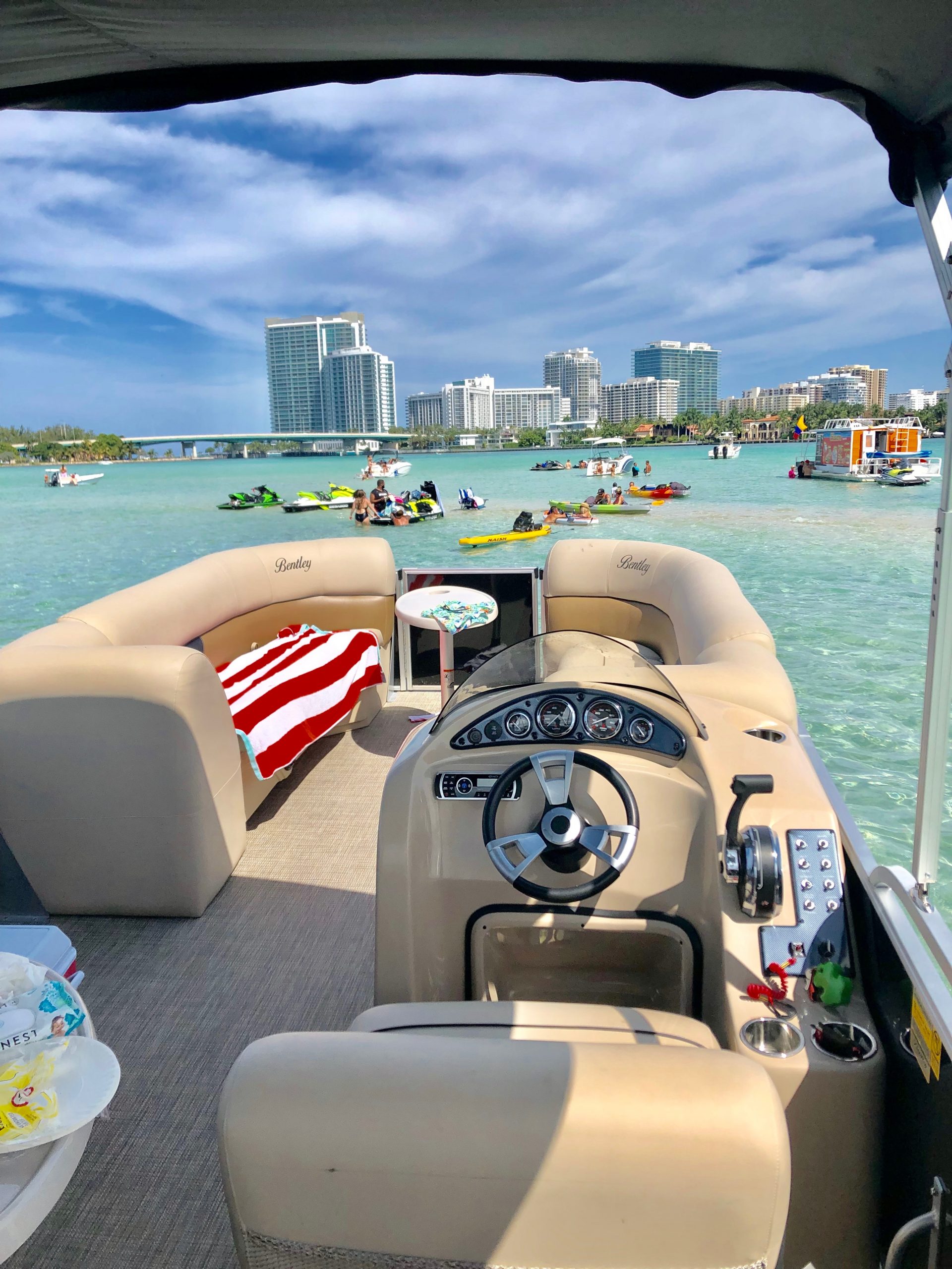 Step aboard our 24-foot Bentley Pontoon, the ideal pontoon boat rental in Miami for laid-back cruising, sandbar parties, and unforgettable days on the water. With room for up to 10 guests, this pontoon offers a comfortable ride through Bal Harbour, Biscayne Bay, and Miami’s famous waterways.