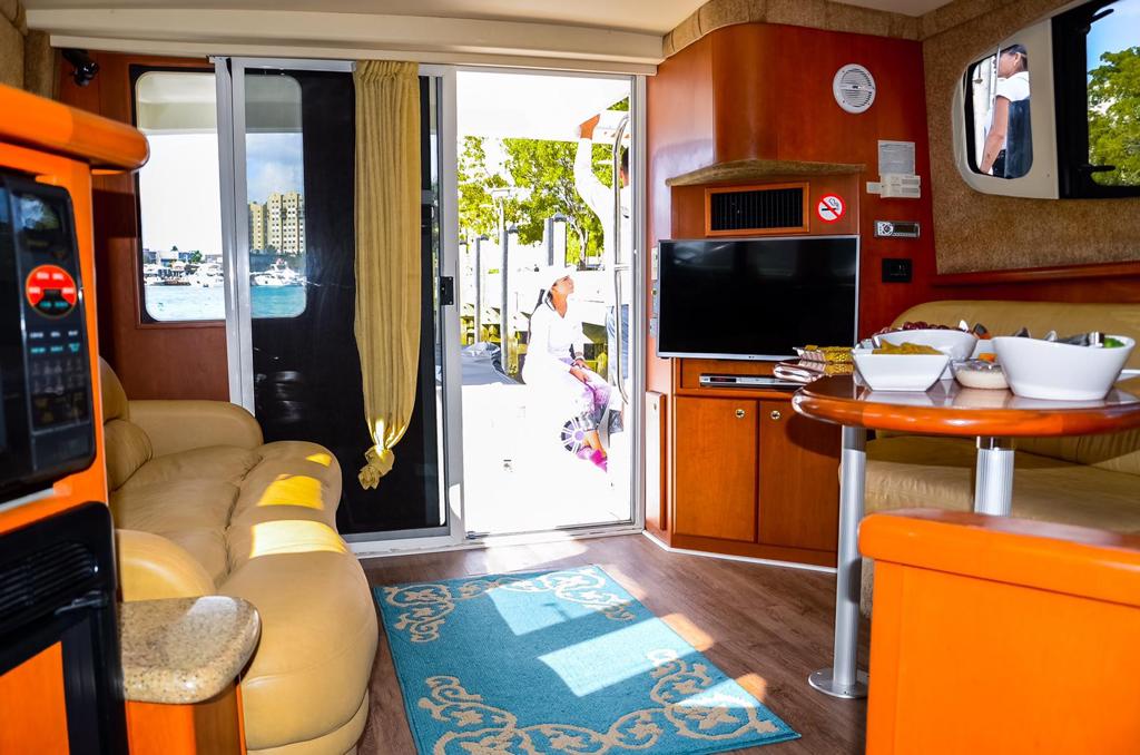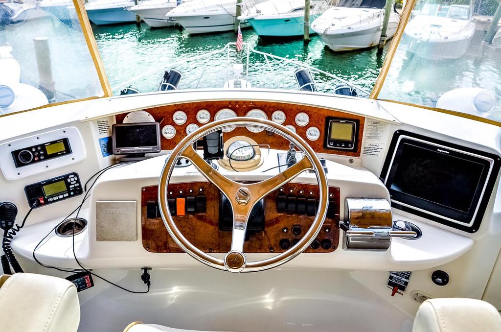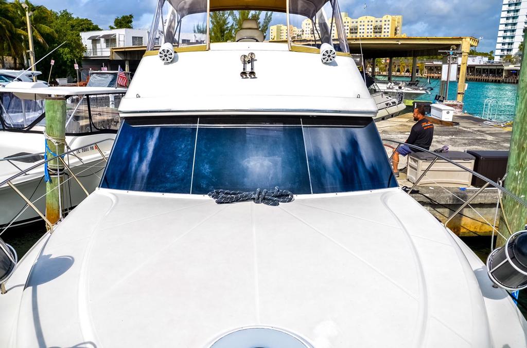 The 42′ Silverton Flybridge is built for comfort and fun, featuring spacious indoor and outdoor areas. With its elevated flybridge and inviting interiors, it’s a great option for relaxing cruises around Miami.