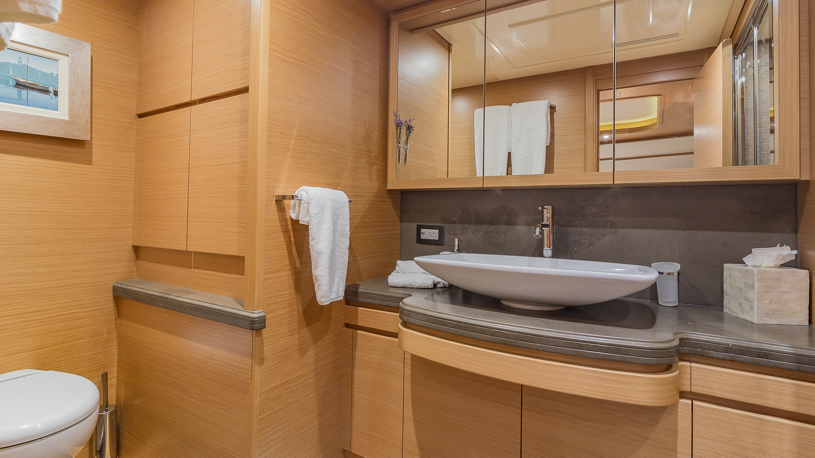 This 97′ Ferretti yacht offers refined elegance paired with excitement. Onboard, you’ll find multiple staterooms, a luxurious salon, and expansive deck areas—plus a complimentary jetski for high-speed thrills.